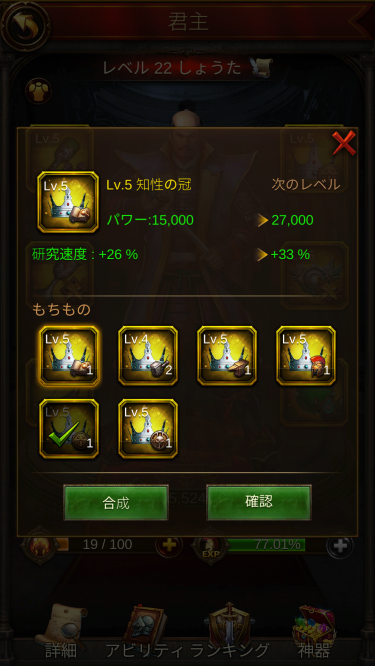 さらに君主の神器装備を「知性の冠」に変える。