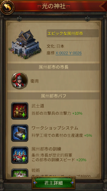 城レベル11を超えたあたりから、ルーシーがプレゼントされて、なんとなく気になってたワールドマップ上の属州都市(Subordinate City)について書きます。