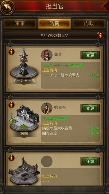 - アーチャー塔の担当官に2番目に強い将軍を配属する